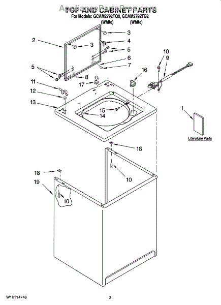 Parts for Whirlpool GCAM2792TQ2: 01 - Top And Cabinet Parts