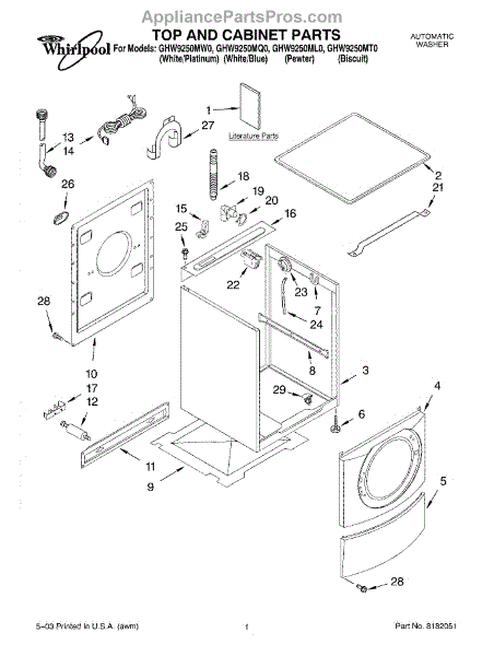 This pewter-finish top panel restores the appliance's exterior and protects internal components from dust and debris. It provides a clean, finished appearance and replaces a damaged or worn factory top. What it does: