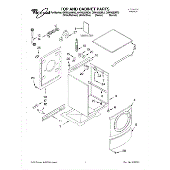 Parts for Whirlpool GHW9250MT0: 01 - Top And Cabinet Parts