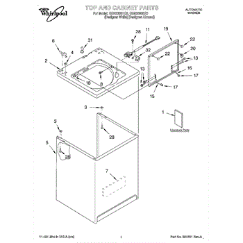 The Washer Lid Screw is an OEM part for Whirlpool washing machines. This 6-32 x .340 screw secures the washer lid to the hinge assembly, ensuring the lid opens and closes smoothly and stays securely in place during operation.
