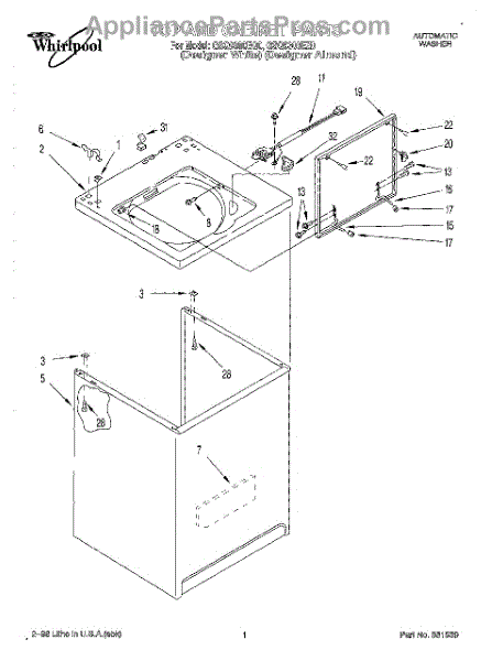 The Washer Lid Screw is an OEM part for Whirlpool washing machines. This 6-32 x .340 screw secures the washer lid to the hinge assembly, ensuring the lid opens and closes smoothly and stays securely in place during operation.