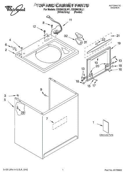 Repair manual for top loading automatic direct drive washing machines made by Whirlpool. Covered brands include Whirlpool, Sears, Kenmore, Kitchen Aid, Roper, and Estate. Easy to follow photographs and step-by-step repair procedures.