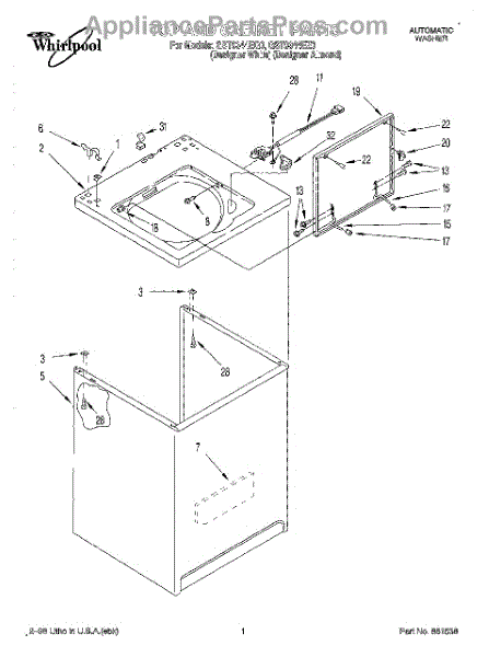 The Washer Lid Screw is an OEM part for Whirlpool washing machines. This 6-32 x .340 screw secures the washer lid to the hinge assembly, ensuring the lid opens and closes smoothly and stays securely in place during operation.