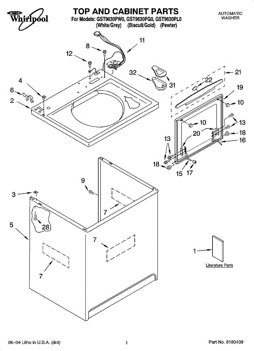 Repair manual for top loading automatic direct drive washing machines made by Whirlpool. Covered brands include Whirlpool, Sears, Kenmore, Kitchen Aid, Roper, and Estate. Easy to follow photographs and step-by-step repair procedures.