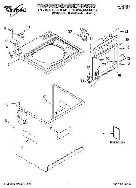 Parts for Whirlpool GST9630PG2: 01 - Top And Cabinet Parts