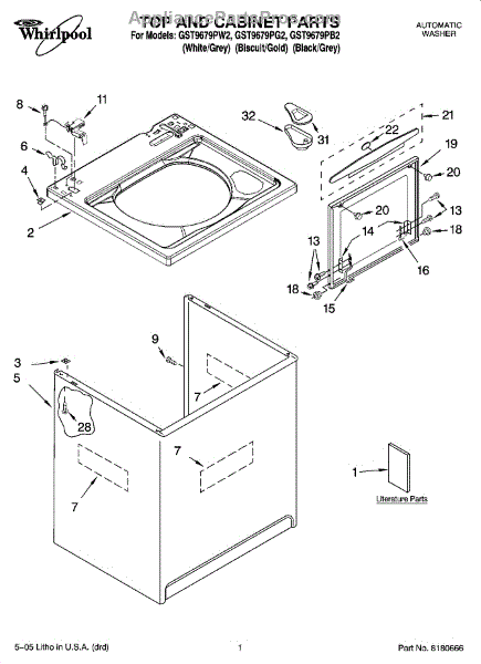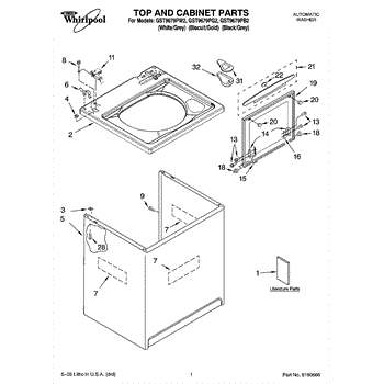 Parts for Whirlpool GST9679PB2: 01 - Top And Cabinet Parts