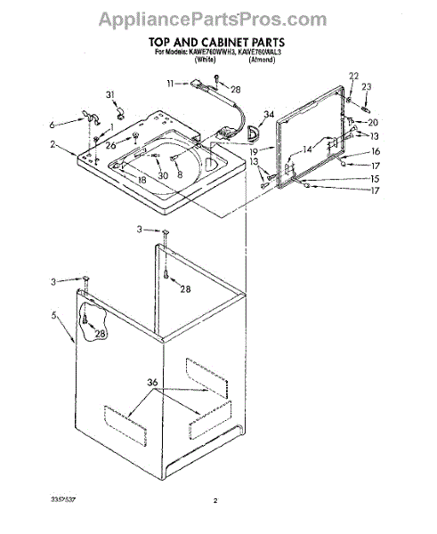 The Whirlpool spacer is an OEM replacement part responsible for maintaining the proper spacing and alignment between the washer cabinet and the top panel. The spacer provides stability and support to the appliance. It ensures that the top panel is securely attached and evenly distributed, preventing any misalignment or instability during operation.