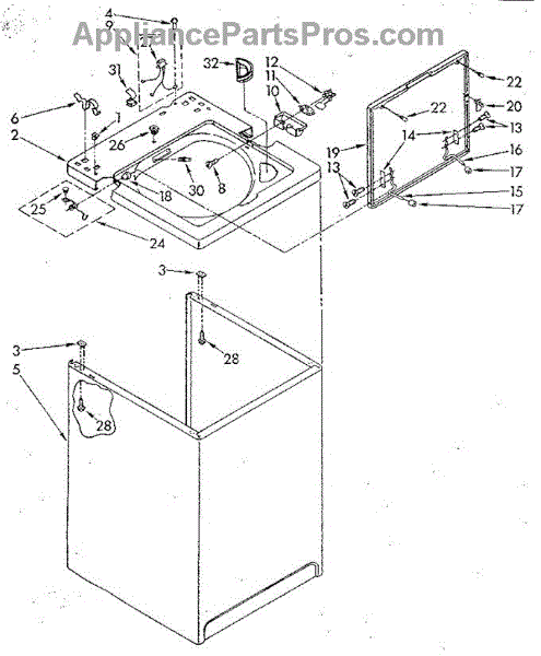 Parts for Whirlpool LA5580XSF3: Top And Cabinet Parts
