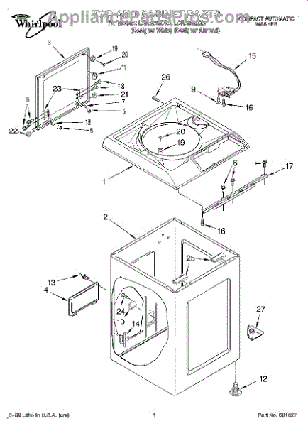 Parts for Whirlpool LCR5232DQ5: 01 - Top And Cabinet Parts