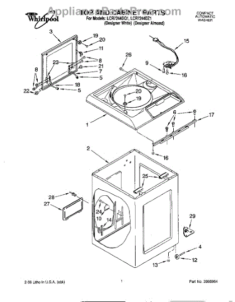 Parts for Whirlpool LCR7244DQ1: 01 - Top And Cabinet Parts
