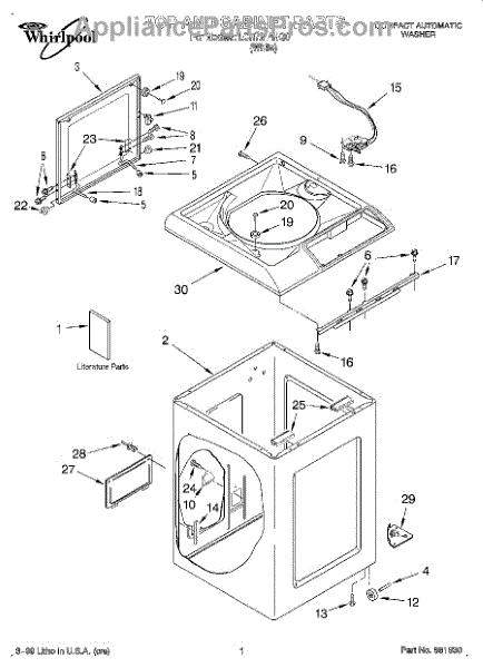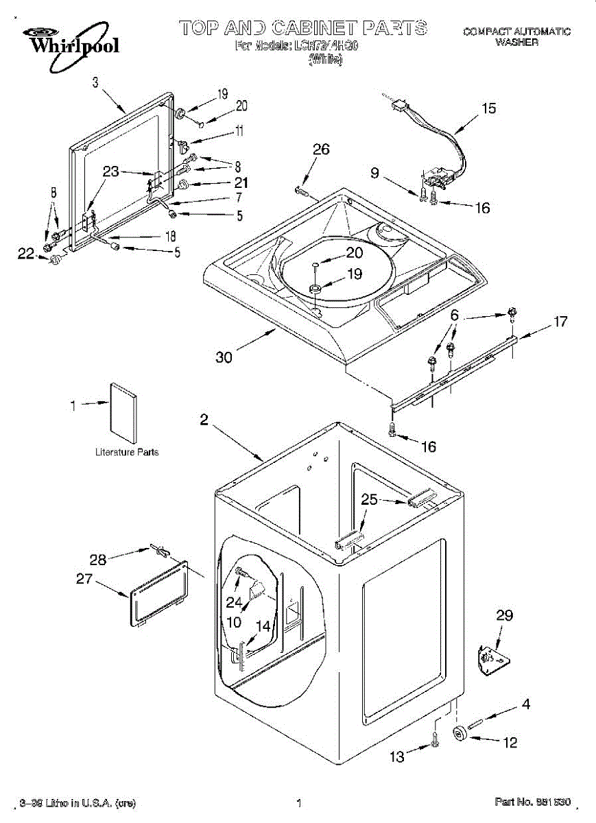 Parts for Whirlpool LCR7244HQ0: 01 - Top And Cabinet, Literature Parts