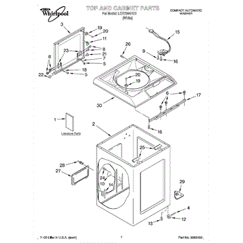 The Washer Lid Screw is an OEM part for Whirlpool washing machines. This 6-32 x .340 screw secures the washer lid to the hinge assembly, ensuring the lid opens and closes smoothly and stays securely in place during operation.