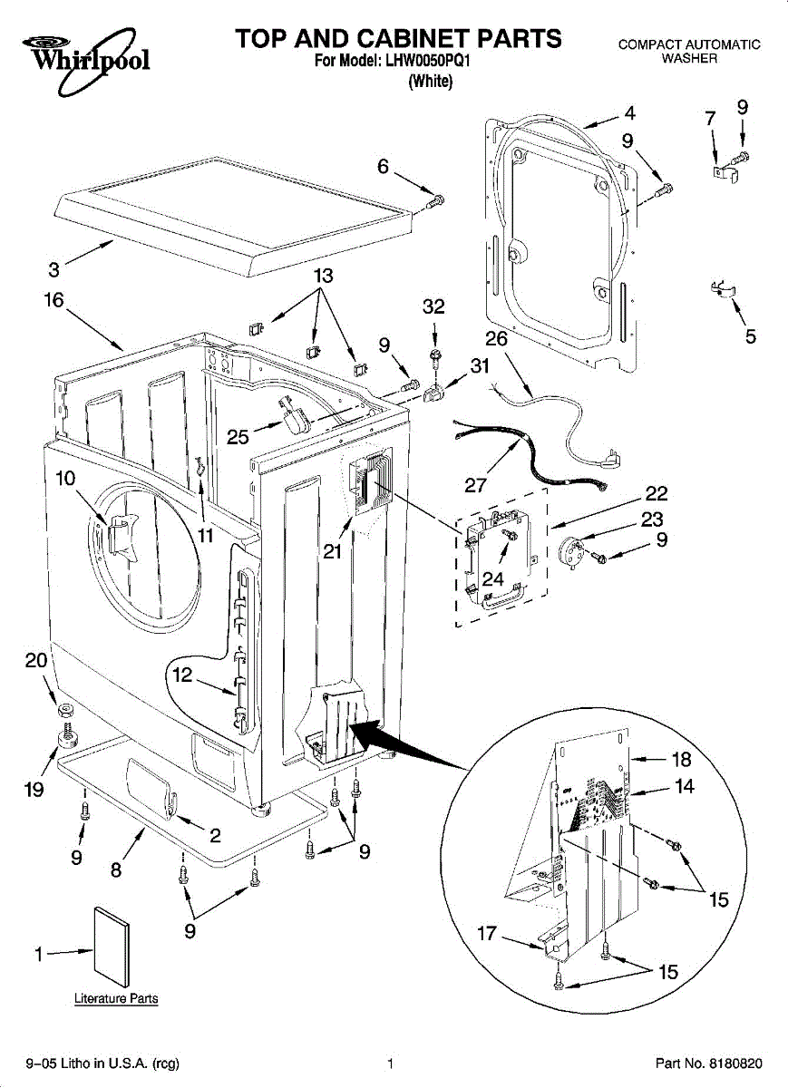 This factory screw secures appliance components to their mounting points. Replace missing, worn, or stripped hardware to restore a tight fit, proper alignment, and quieter operation across the affected assembly.