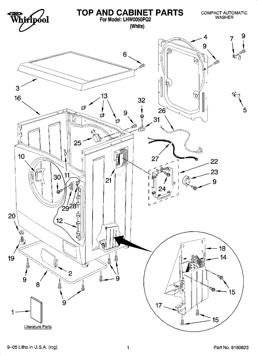 Parts for Whirlpool LHW0050PQ2: 01 - Top And Cabinet Parts