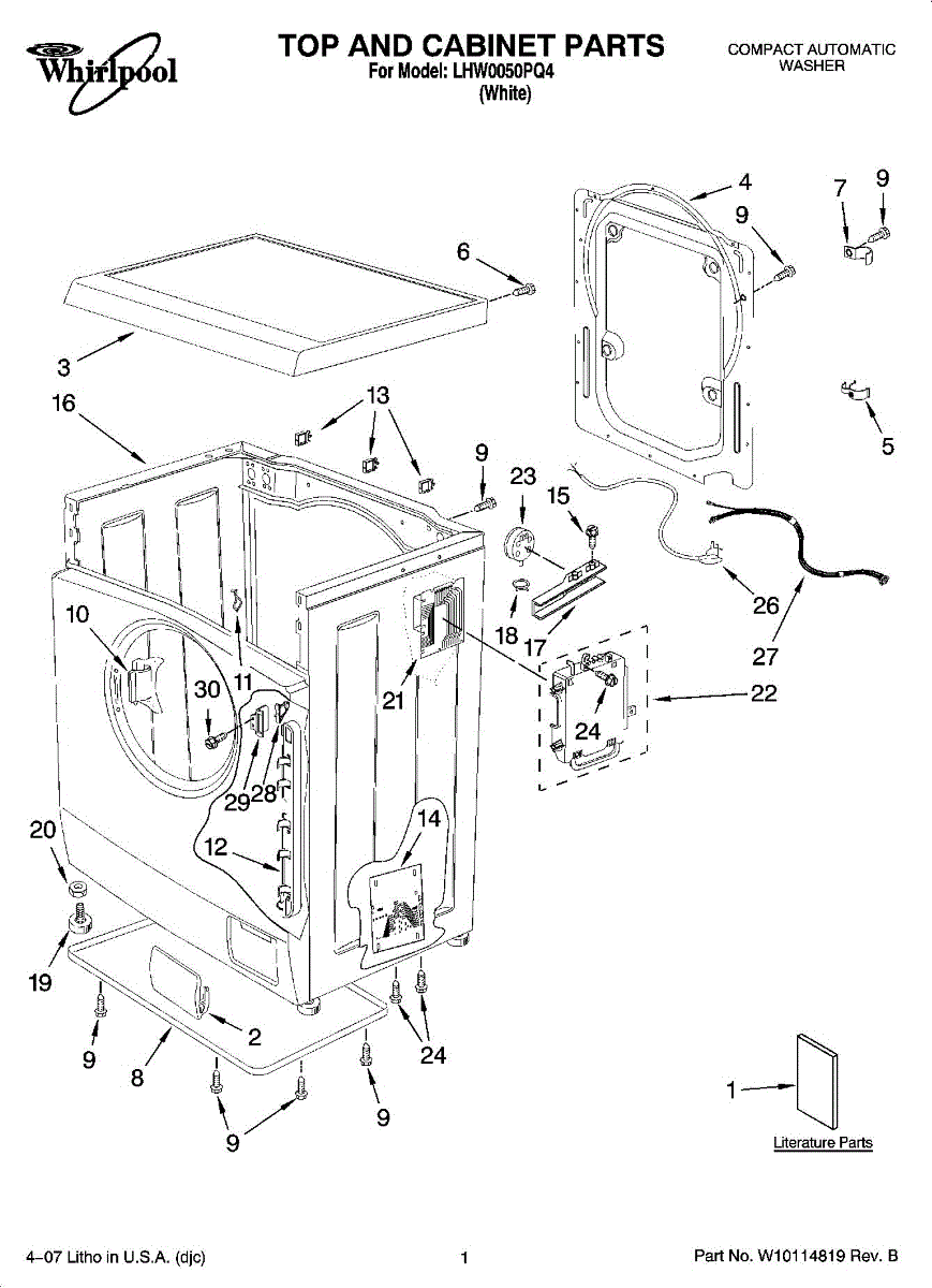 This factory screw secures appliance components to their mounting points. Replace missing, worn, or stripped hardware to restore a tight fit, proper alignment, and quieter operation across the affected assembly.