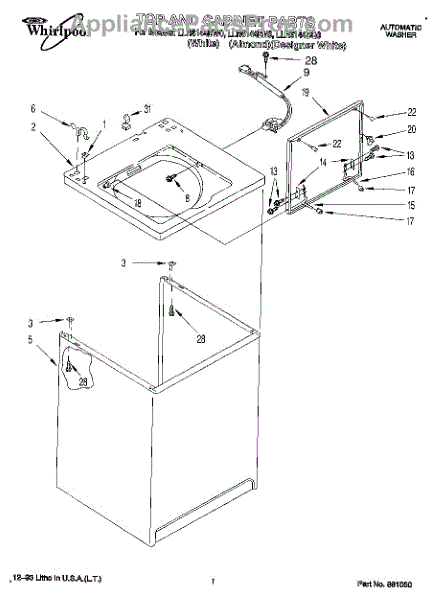 Repair manual for top loading automatic direct drive washing machines made by Whirlpool. Covered brands include Whirlpool, Sears, Kenmore, Kitchen Aid, Roper, and Estate. Easy to follow photographs and step-by-step repair procedures.