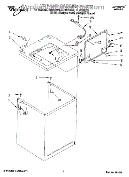 Repair manual for top loading automatic direct drive washing machines made by Whirlpool. Covered brands include Whirlpool, Sears, Kenmore, Kitchen Aid, Roper, and Estate. Easy to follow photographs and step-by-step repair procedures.