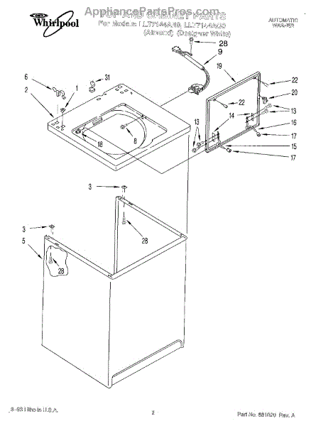 Repair manual for top loading automatic direct drive washing machines made by Whirlpool. Covered brands include Whirlpool, Sears, Kenmore, Kitchen Aid, Roper, and Estate. Easy to follow photographs and step-by-step repair procedures.