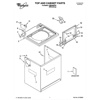 Parts for Whirlpool LSB6300PW4: 01 - Top And Cabinet Parts