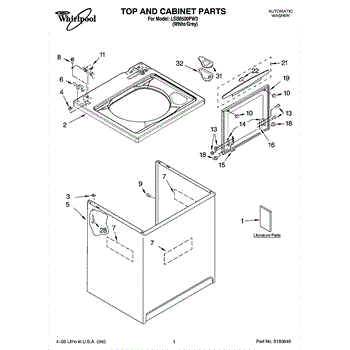 Parts for Whirlpool LSB6500PW3: 01 - Top And Cabinet Parts