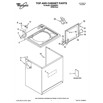 Parts for Whirlpool LSC9000PW1: 01 - Top And Cabinet Parts
