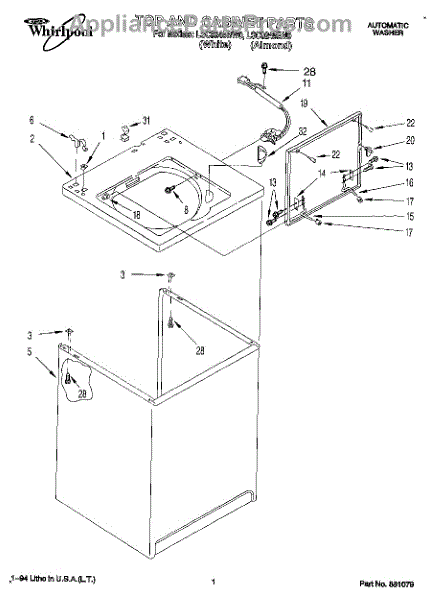 Parts for Whirlpool LSC9245BW0: 01 - Top And Cabinet, Lit / Optional Parts