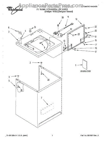 Repair manual for top loading automatic direct drive washing machines made by Whirlpool. Covered brands include Whirlpool, Sears, Kenmore, Kitchen Aid, Roper, and Estate. Easy to follow photographs and step-by-step repair procedures.