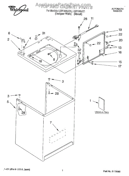 Repair manual for top loading automatic direct drive washing machines made by Whirlpool. Covered brands include Whirlpool, Sears, Kenmore, Kitchen Aid, Roper, and Estate. Easy to follow photographs and step-by-step repair procedures.