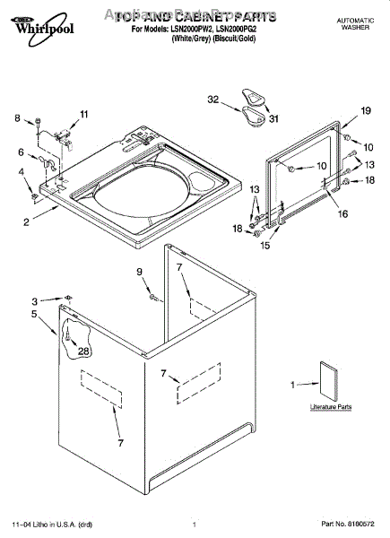 Parts for Whirlpool LSN2000PG2: 01 - Top And Cabinet Parts