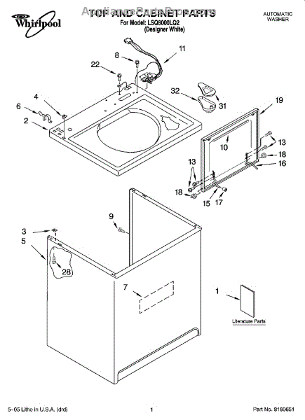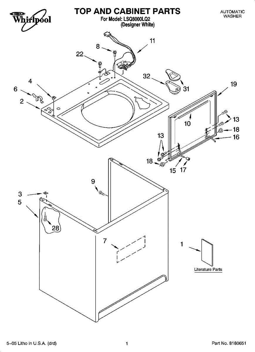 Parts for Whirlpool LSQ8000LQ2: 01 - Top And Cabinet Parts