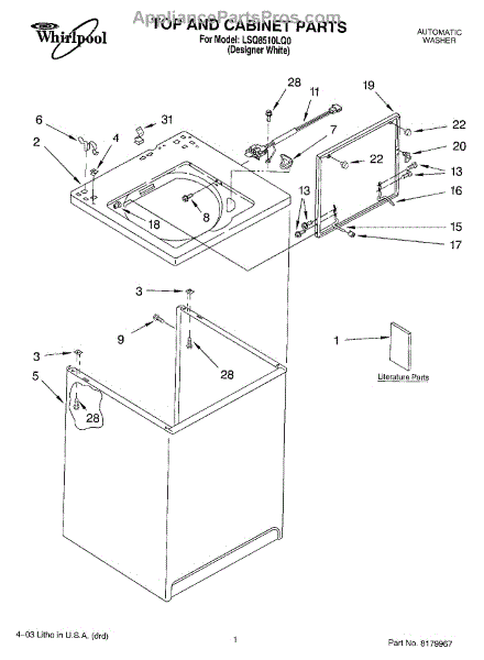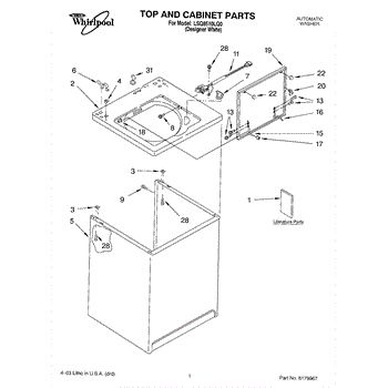 Parts for Whirlpool LSQ8510LQ0: 01 - Top And Cabinet Parts