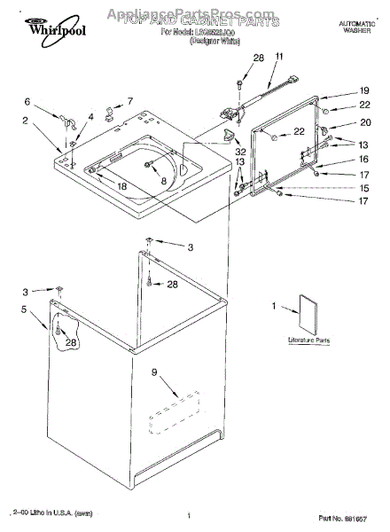 Repair manual for top loading automatic direct drive washing machines made by Whirlpool. Covered brands include Whirlpool, Sears, Kenmore, Kitchen Aid, Roper, and Estate. Easy to follow photographs and step-by-step repair procedures.