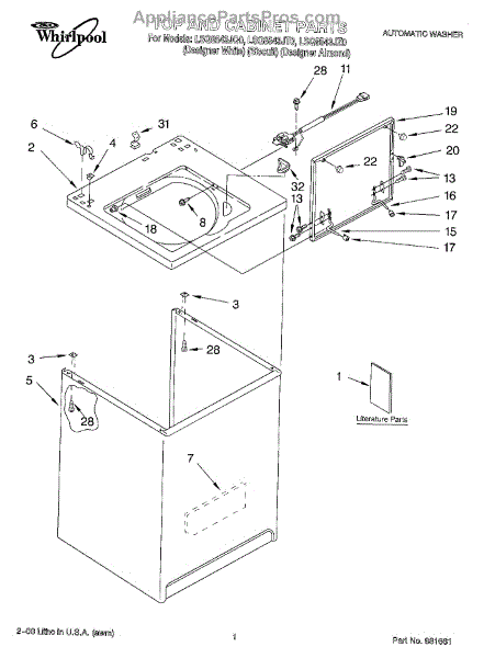 Parts for Whirlpool LSQ8543JT0: 01 - Top And Cabinet, Literature Parts