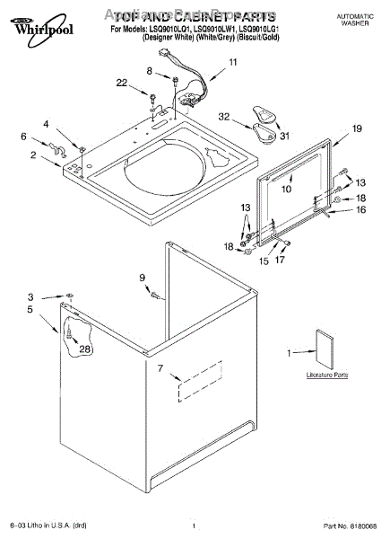 Parts for Whirlpool LSQ9010LQ1: 01 - Top And Cabinet Parts