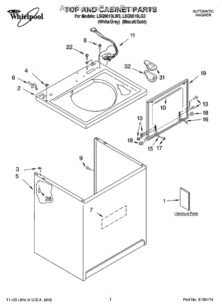 Parts for Whirlpool LSQ9010LW3: 01 - Top And Cabinet Parts