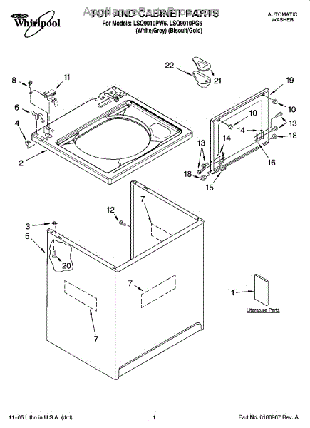 Parts for Whirlpool LSQ9010PG6: 01 - Top And Cabinet Parts