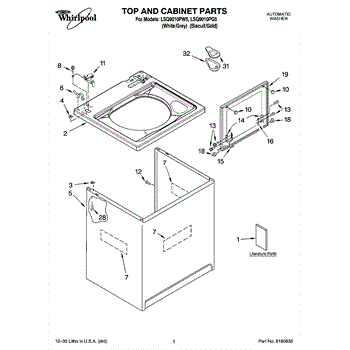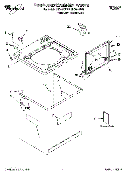 Parts for Whirlpool LSQ9010PW5: 01 - Top And Cabinet Parts