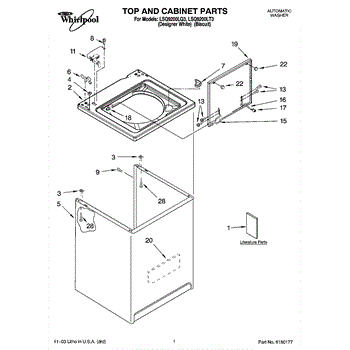 Repair manual for top loading automatic direct drive washing machines made by Whirlpool. Covered brands include Whirlpool, Sears, Kenmore, Kitchen Aid, Roper, and Estate. Easy to follow photographs and step-by-step repair procedures.