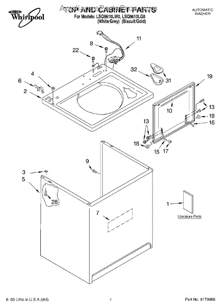 Parts for Whirlpool LSQ9610LG0: 01 - Top And Cabinet Parts