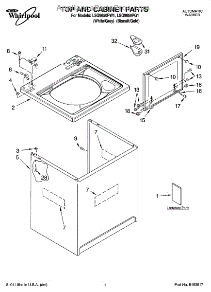 Parts for Whirlpool LSQ9650PW1: 01 - Top And Cabinet Parts