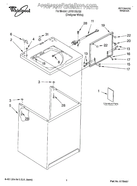 Parts for Whirlpool LSR5132JQ0: 01 - Top And Cabinet, Literature Parts