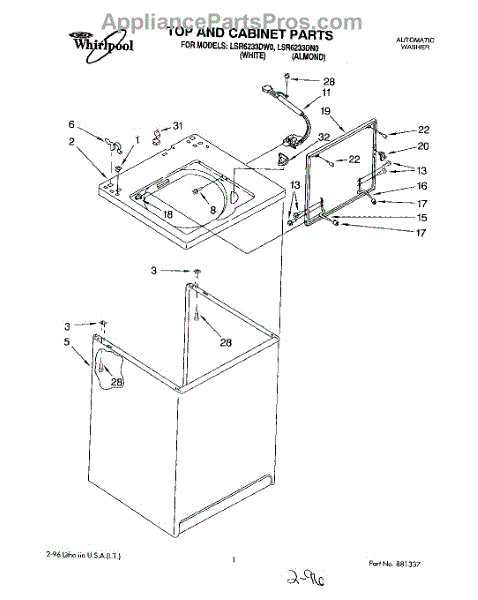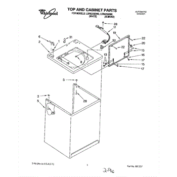 Parts for Whirlpool LSR6233DN0: 01 - Top And Cabinet, Lit / Optional Parts