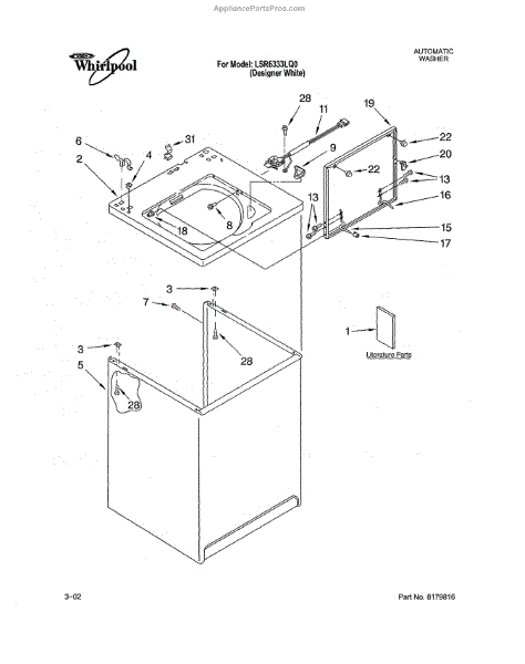 Repair manual for top loading automatic direct drive washing machines made by Whirlpool. Covered brands include Whirlpool, Sears, Kenmore, Kitchen Aid, Roper, and Estate. Easy to follow photographs and step-by-step repair procedures.
