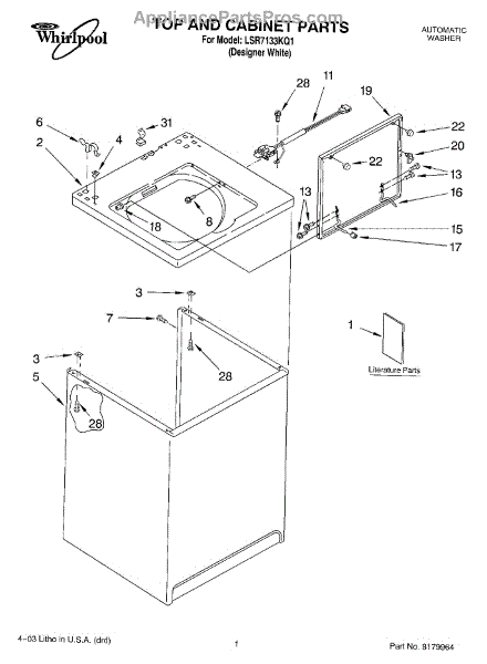 Parts for Whirlpool LSR7133KQ1: 01 - Top And Cabinet Parts