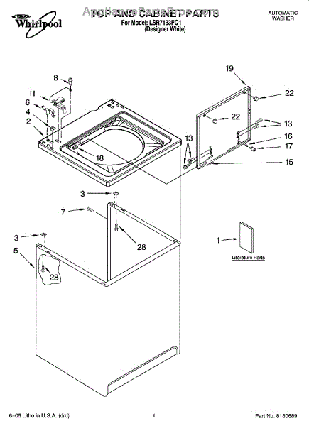 Parts for Whirlpool LSR7133PQ1: 01 - Top And Cabinet Parts