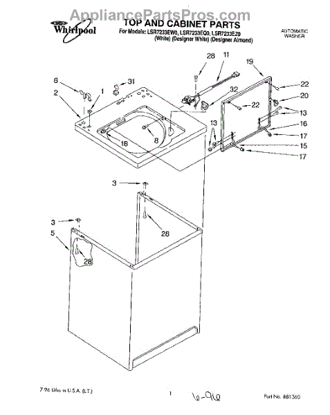 Parts for Whirlpool LSR7233EZ0: 01 - Top And Cabinet Parts