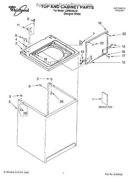 Parts for Whirlpool LSR8444LQ1: 01 - Top And Cabinet Parts