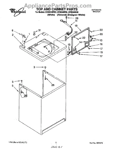 Repair manual for top loading automatic direct drive washing machines made by Whirlpool. Covered brands include Whirlpool, Sears, Kenmore, Kitchen Aid, Roper, and Estate. Easy to follow photographs and step-by-step repair procedures.