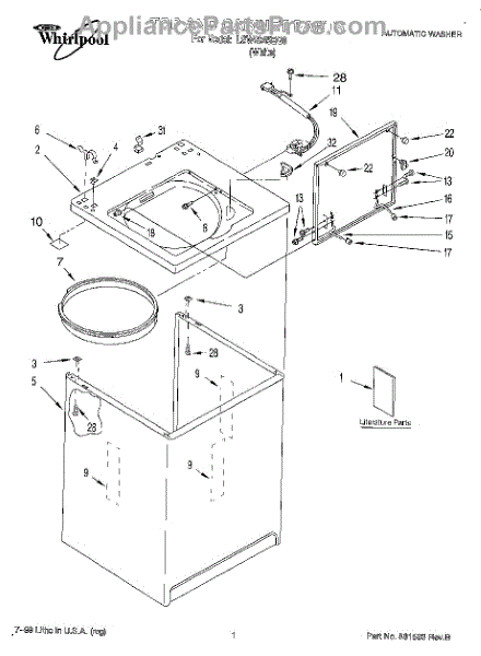 Repair manual for top loading automatic direct drive washing machines made by Whirlpool. Covered brands include Whirlpool, Sears, Kenmore, Kitchen Aid, Roper, and Estate. Easy to follow photographs and step-by-step repair procedures.