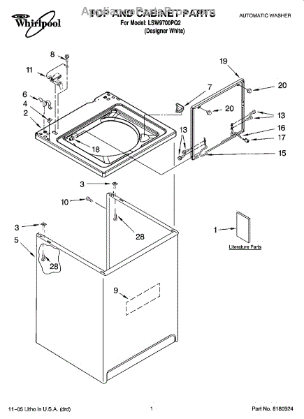 Repair manual for top loading automatic direct drive washing machines made by Whirlpool. Covered brands include Whirlpool, Sears, Kenmore, Kitchen Aid, Roper, and Estate. Easy to follow photographs and step-by-step repair procedures.